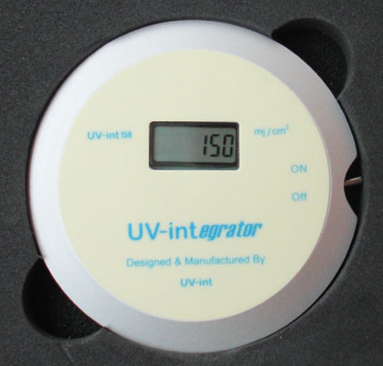 UV能量計(jì)( UV-int150 ): UV-int150標(biāo)準(zhǔn)型UV能量計(jì)是一種高質(zhì)量的UV能量測(cè)量?jī)x。UV能量計(jì)是用于測(cè)量UV固化裝置的UV能量的一種儀器,測(cè)量?jī)x的主感器在測(cè)量?jī)x的背面,測(cè)量范圍為250~410納米,測(cè)量時(shí)可直接顯示于能量計(jì)正面的顯示屏上讀出(單位:毫焦耳/平方厘米),該能量計(jì)的電源為3.6伏特的鋰電池,該電池由于使用了特別的能源節(jié)省線路,該電池可持續(xù)大約10000小時(shí)。
