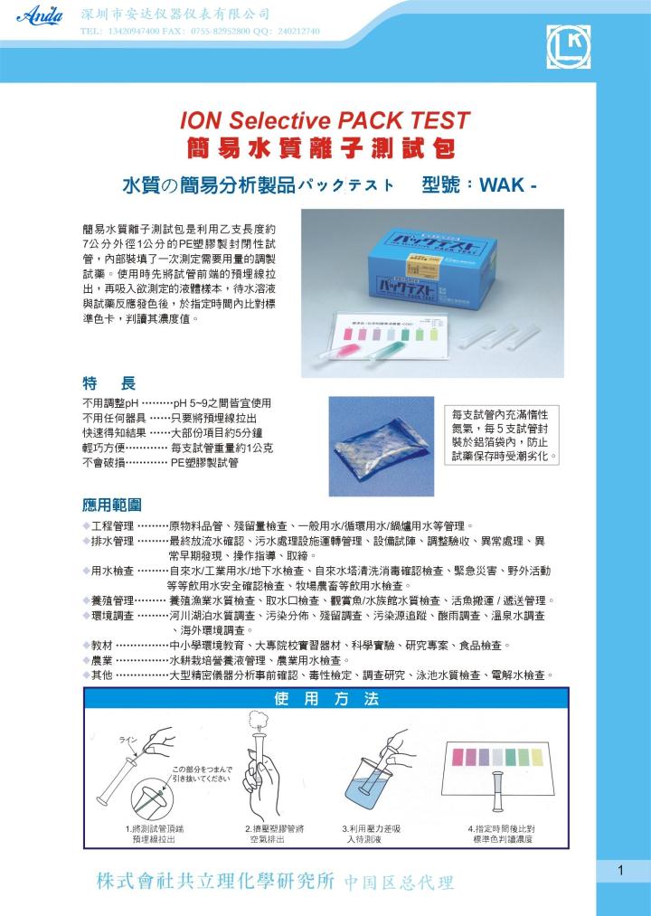 商品名稱: 日本共立水質(zhì)測(cè)試包REAGENT SET for water analyzer LR-PO4