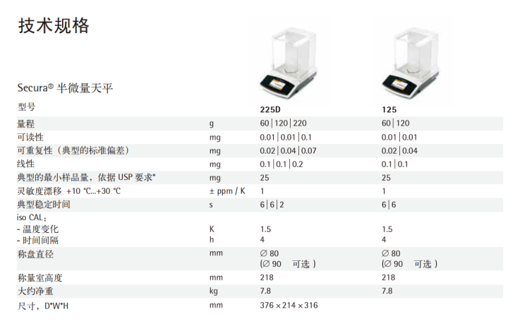 商品規(guī)格: Quintix電子天平